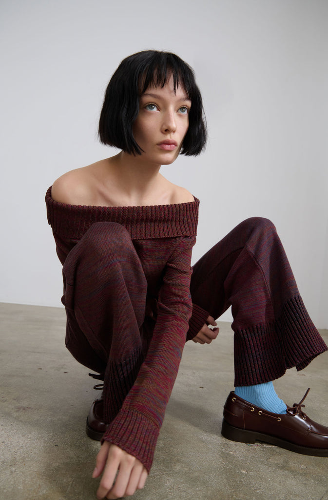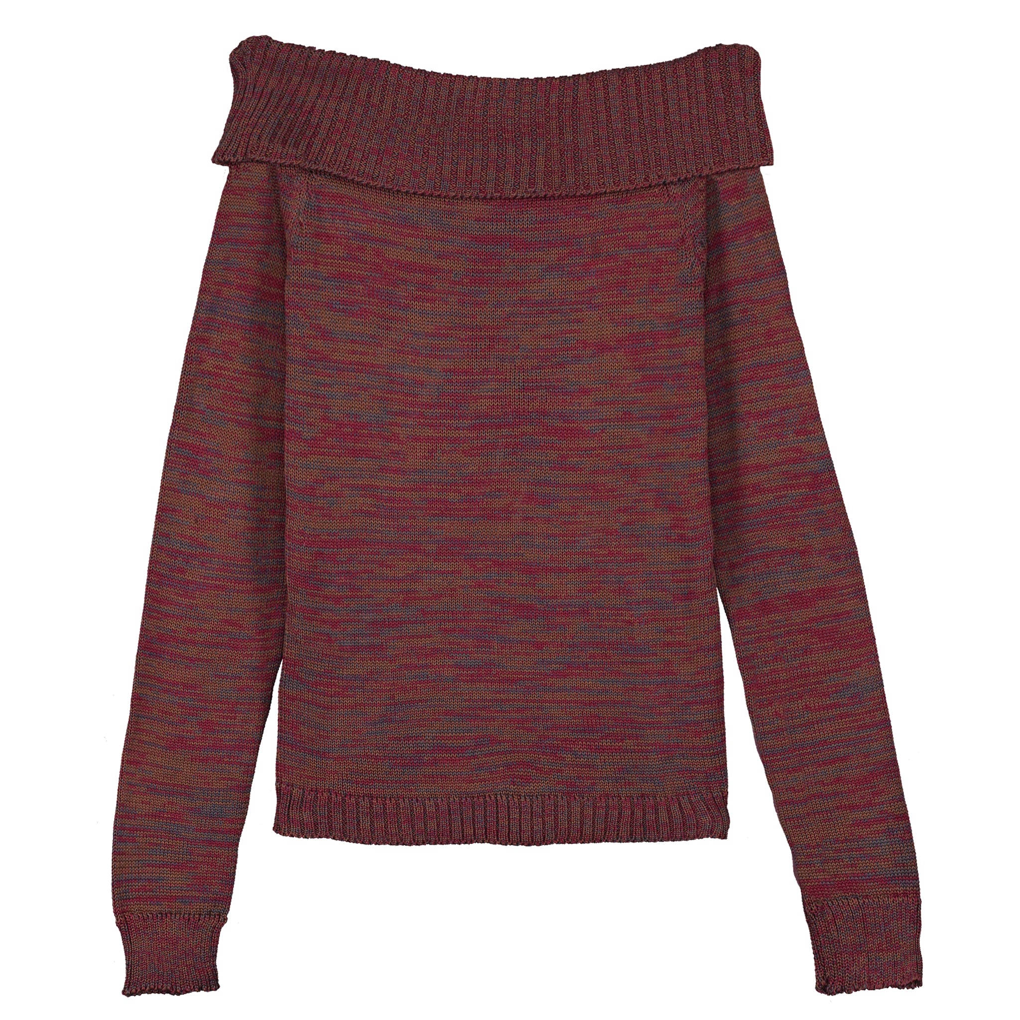 - Boat neckline top with ribbed cuffs and hem