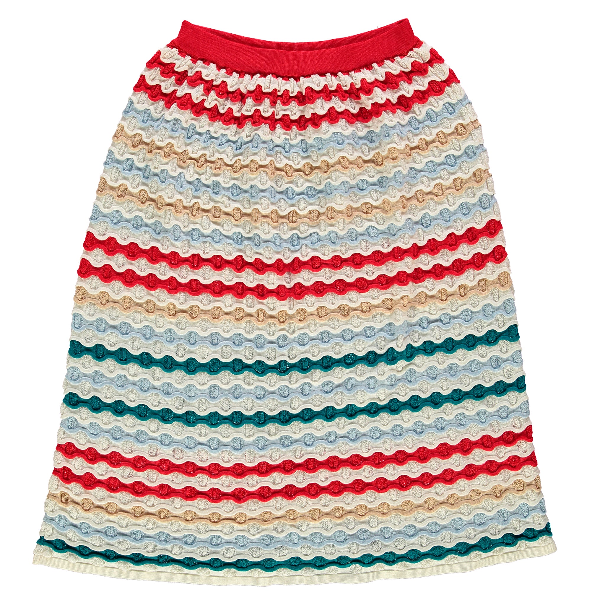 - Middle-length skirt with wavy horizontal structure